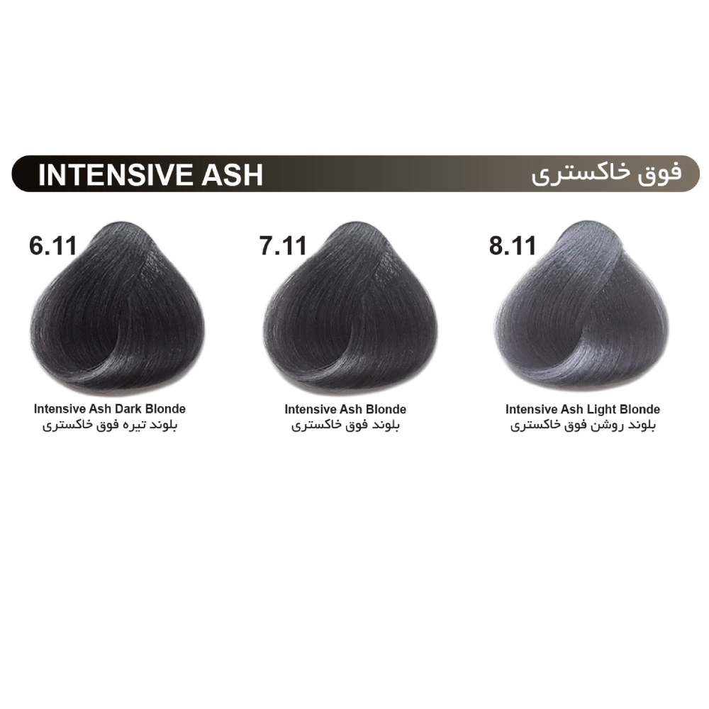 بلوند تیره فوق خاکستری (6.11) ,بلوند فوق خاکستری (7.11) ,بلوند روشن فوق خاکستری (8.11) |